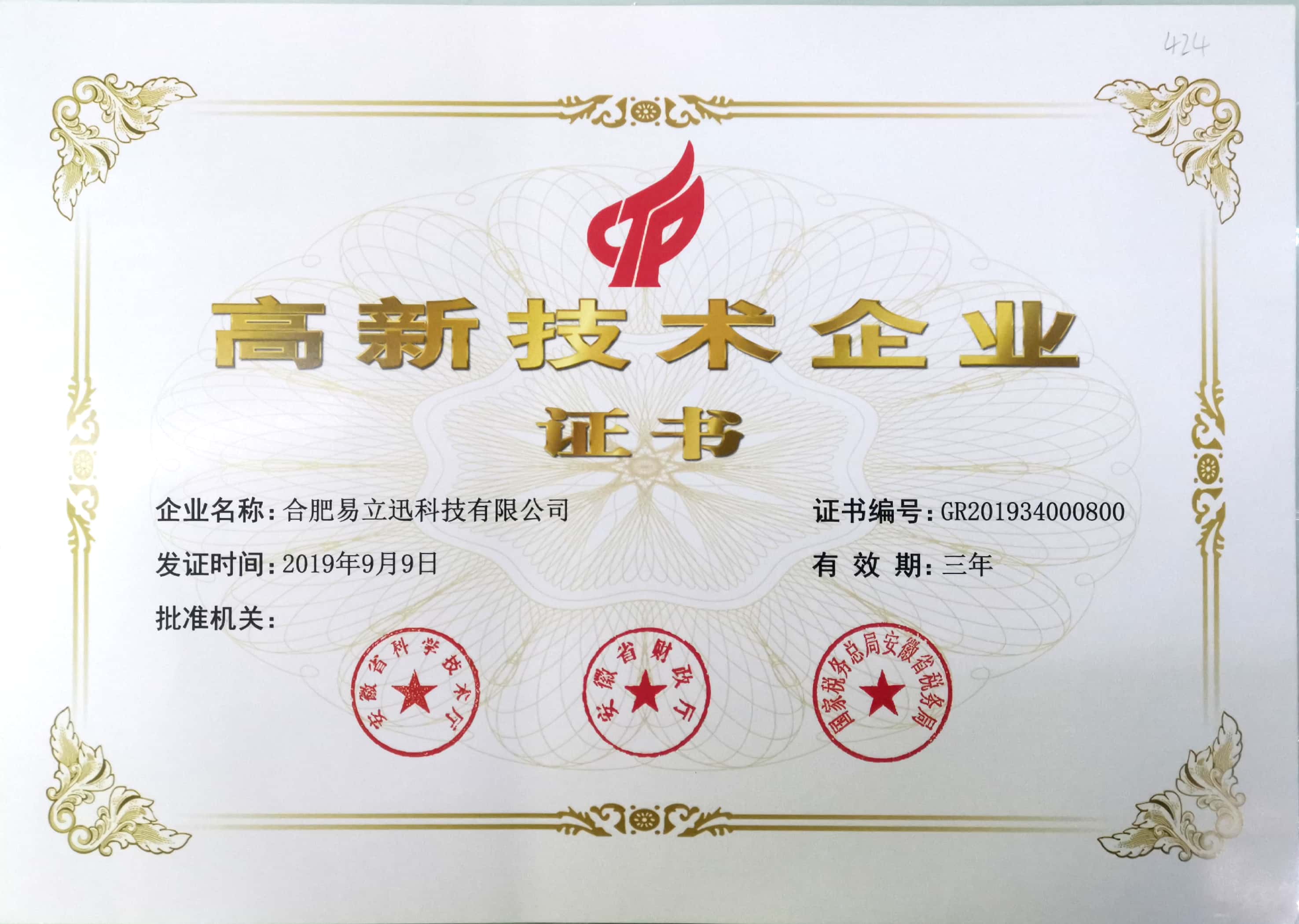 合肥易立迅科技有限公司(簡稱“易立迅”)于2015年成立于合肥,首批注冊資金1000萬元人民幣。2019年通過“高新技術企業”認證。